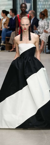 Wes Gordon's proposal for Carolina Herrera at New York Fashion Week Fall/Winter 2024 is inspired by the duality of femininity. The collection explores the tension between strength and delicacy, light and darkness, classic and modern.